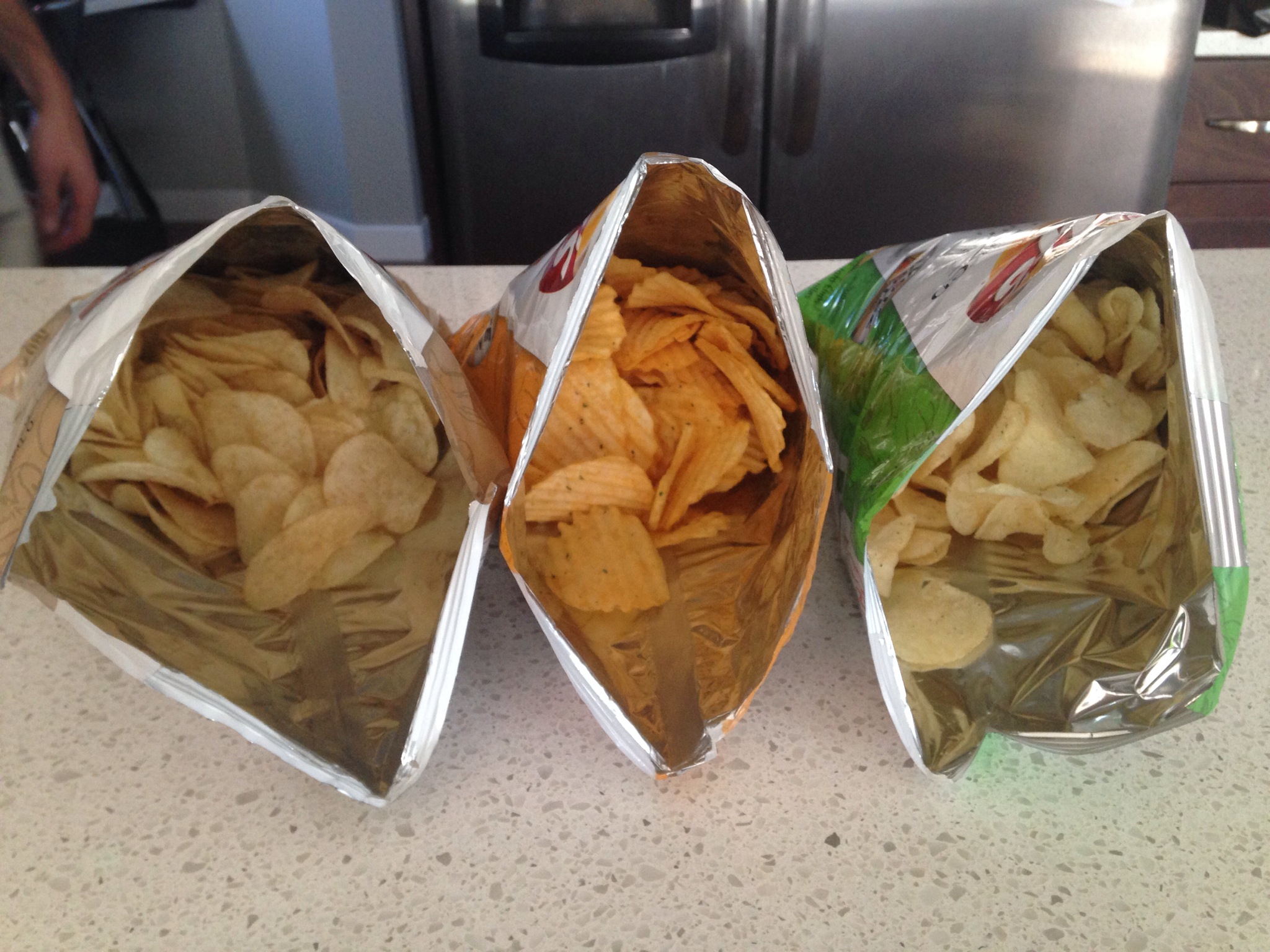 I decided to take the Lays potato chip flavour challenge. I purchased three different flavours to try (and I know there are four, but I am one of those strange people that doesn’t enjoy bacon. Seeing the the fourth flavour was bacon poutine I decided against it.)